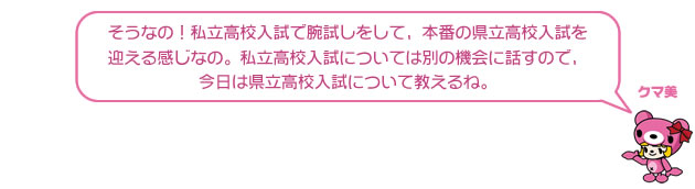 の2種類があります。私立高校入試が1月~2月に行われ、県立高校入試が3月の上旬に行われます。