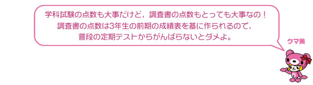 | 調査書 | 英4 数3 国5 理4 社3 | 合計38点/50点満点 |