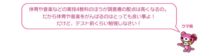 | 体育 技家 美術 音楽 | 5点×4科×6倍 | 合計 120点 |