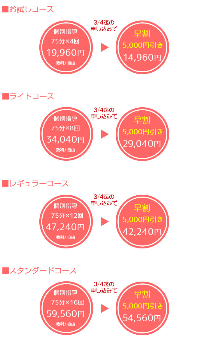 ※個別指導は、お好きな教科・時間をお選び下さい。