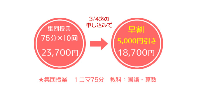 小5内容の復習と小6内容のサキドリを行い、受験勉強をスタートさせます。受験に対する心構えや、今後身につけておきたい学習の基礎を伝授!入試対策は春ゼミから始めよう!